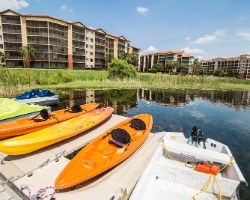 Set on one of Florida's most scenic lakes, *Westgate Lakes* features comfortable resort villas with such amenities as a full kitchen, screened porch or patio, separate living and dining areas, leather furniture, and master bedroom with a color television and whirlpool bath. Just minutes from Walt Disney World, Universal Orlando, and SeaWorld, Westgate Lakes guests enjoy tennis courts, swimming pools, hot tubs, basketball, volleyball, paddle-boats, planned adult and children's activities, and a full-service spa. The on-site Smokehouse Grill is one of Orlando's best barbecue restaurants.